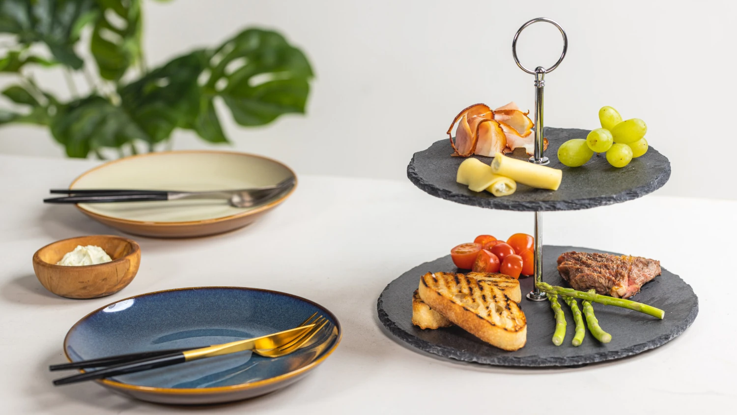 Wil jij je hapjes op een stijlvolle manier presenteren? Dan is de Cookinglife Etagere Leisteen 2 Laags precies wat je zoekt! De etagere heeft een mooie uitstraling dankzij de donkere leisteen. De bovenste etagere heeft een diameter van 20 cm en de bovensten een diameter van 25 cm. De Cookinglife Etagere Leisteen 2 Laags is 25 cm hoog en perfect voor het serveren van hapjes op bijvoorbeeld een verjaardag of voor een high tea! Na gebruik is de etagere eenvoudig af te wassen met de hand.